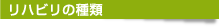 理学療法、作業療法、言語聴覚療法の三種類があり、それぞれ、理学療法士(PT)、作業療法士(OT)、言語聴覚士(ST)が専門で行います。